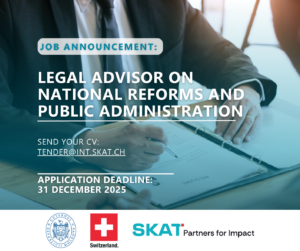 To the email address tender@int.skat.ch , mentioning in the subject line “Legal Advisor on National Reforms and Public Administration”. Deadline for submission of the requested documents is December 31, 2025.
